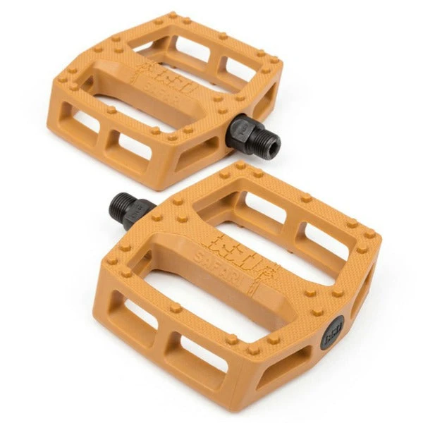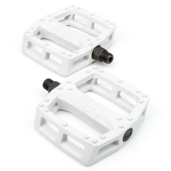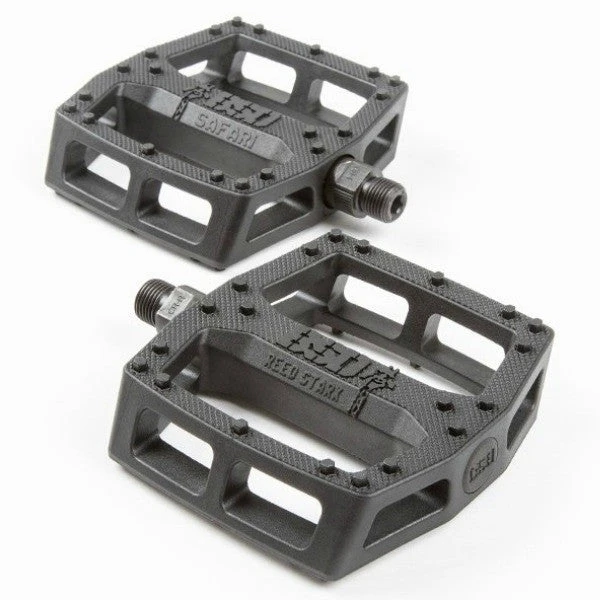 Reed Stark signature pedals. Made from a tough nylon/fiberglass composite. True dual concave design with knurled bodies and 20 optimally-placed hexagonal pins per side. Chromoly spindle. Sold in pairs. 9/16″.