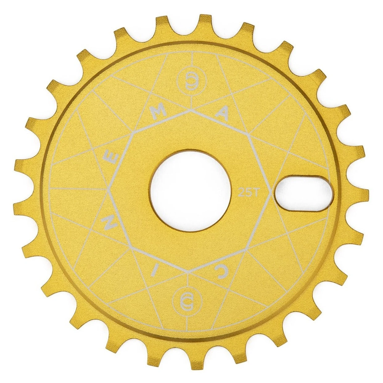 Made from fully CNC machined 6.35mm thick 6061-T6 aluminum with laser etched graphics.Offset teeth for improved chain alignment. 15/16″ (24mm) bore with included 19mm and 22mm adapters.