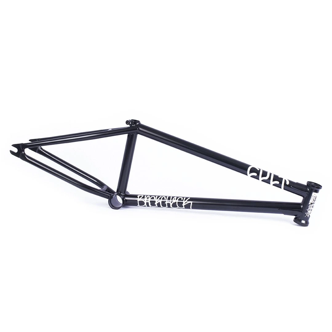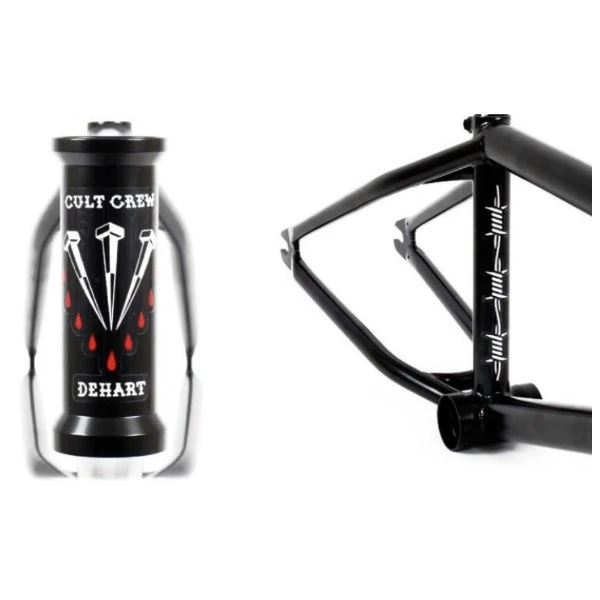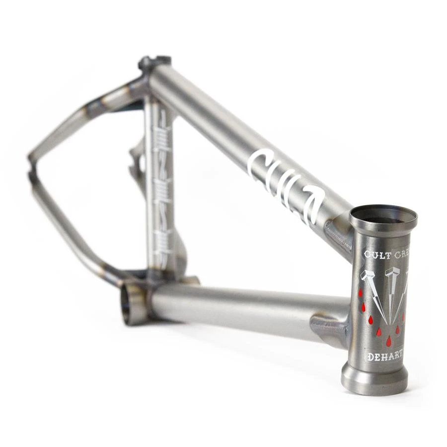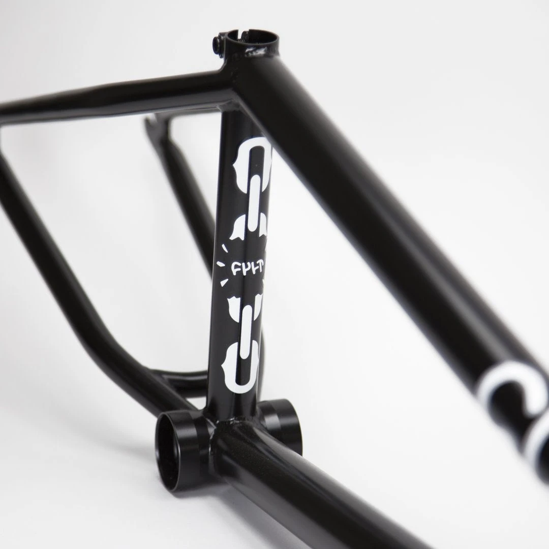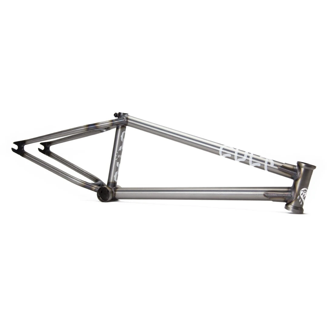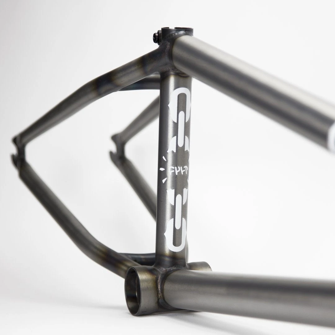 Quality 100% Cult Classic chromoly tubing. Top and down tube gussets. Integrated head tube. Externally machined bottom bracket shell. Integrated seat post clamp. S-bend chainstays with clearance for wide tires. 5mm thick heat-treated 14mm dropouts.