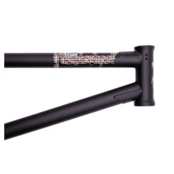 Made from revised 100% cult classic tubing for increased strength. Short, quick, responsive rear end. Top and down tube gussets, integrated head tube, externally machined mid BB shell, investment cast seat post clamp, seatstay bridge, and chainstay yoke. Tapered seatstays with removable brake mounts. Room for 2.40” tires. Investment cast dropouts.