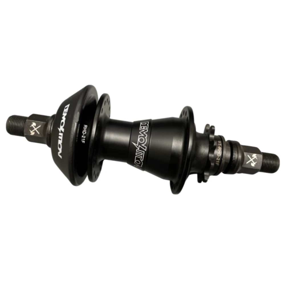 Slimmed-down and lightweight 6061-T6 aluminum hub shell with 2 precision-sealed cartridge bearings. Smaller 1-piece chromoly driver with standard engagement. 14mm heat-treated chromoly axle with Allen broach for easy removal. 14mm chromoly axle nuts. 36 hole.