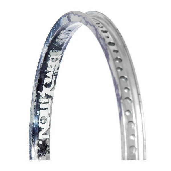 Double-walled design with two vertical ribs and a welded seam for increased rigidity. Extra drilling on inner wall to reduce weight. 36 hole only.