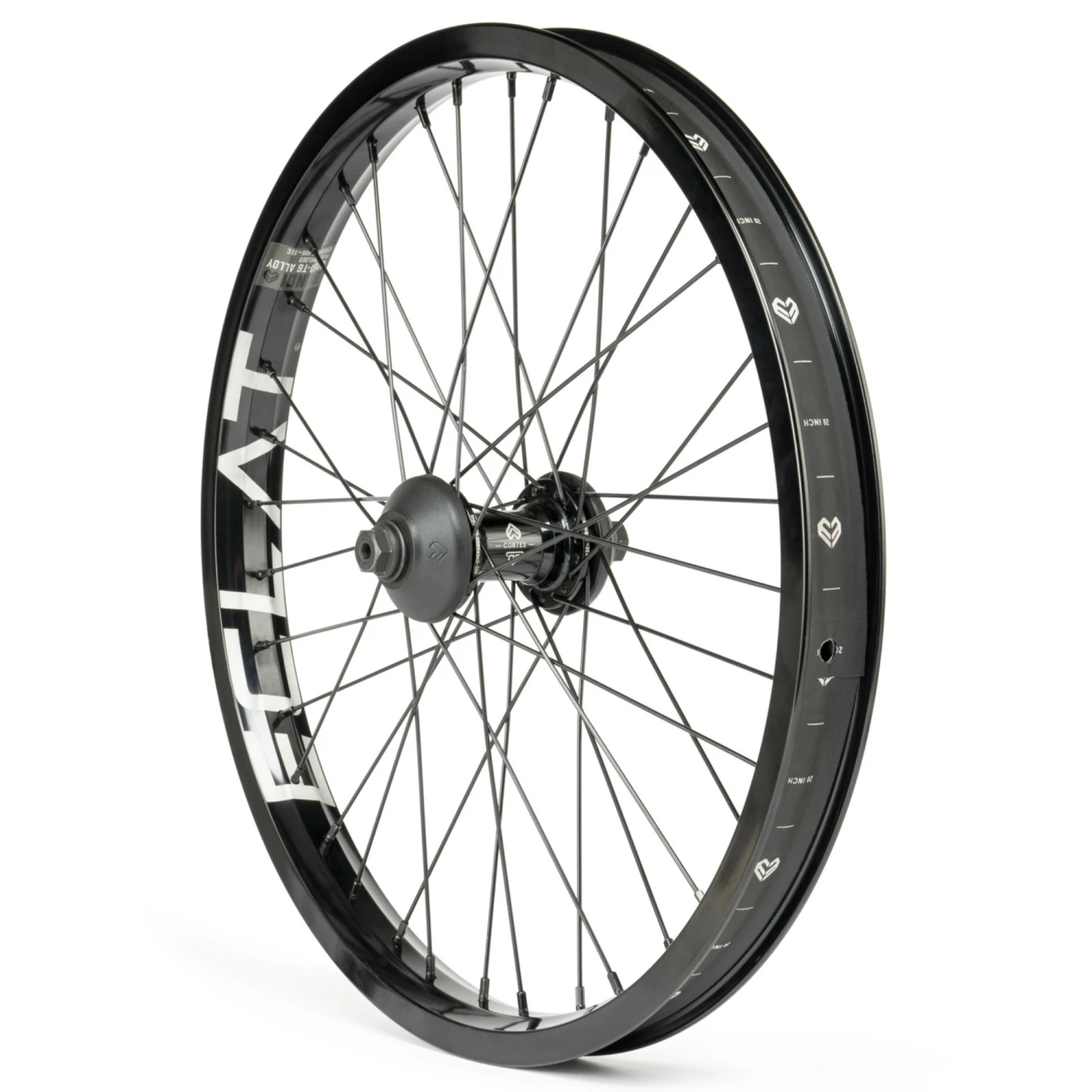 Eclat’s new Cortex OS front hub and Bondi double wall rim laced with 14 gauge spokes and brass nipples. Includes 2 nylon/fiberglass blend hub guards.