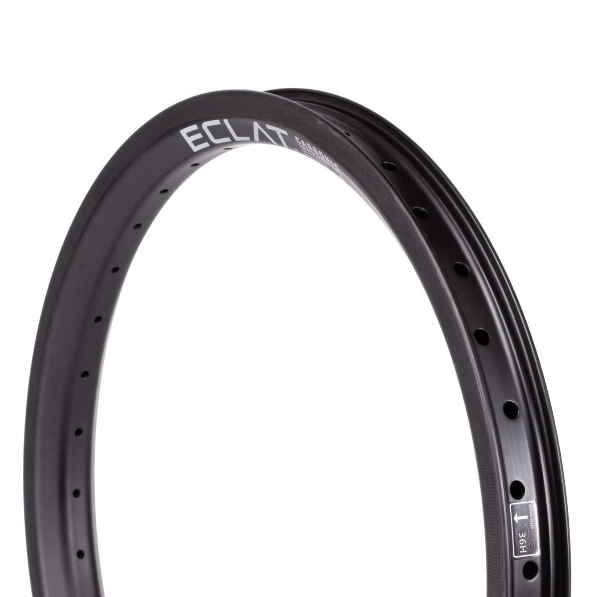 Made from Torayca high-performance carbon fibre. Incredibly lightweight and stiff compared to an alloy rim. Laboratory tested to withstand huge impacts. Extensively tested by the Eclat pro team. Tubeless ready. Offset spoke drilling for improved spoke alignment. Available in a brakeless version or with a brake pad-ready sidewall layer. 36 hole. SOLD INDIVIDUALLY