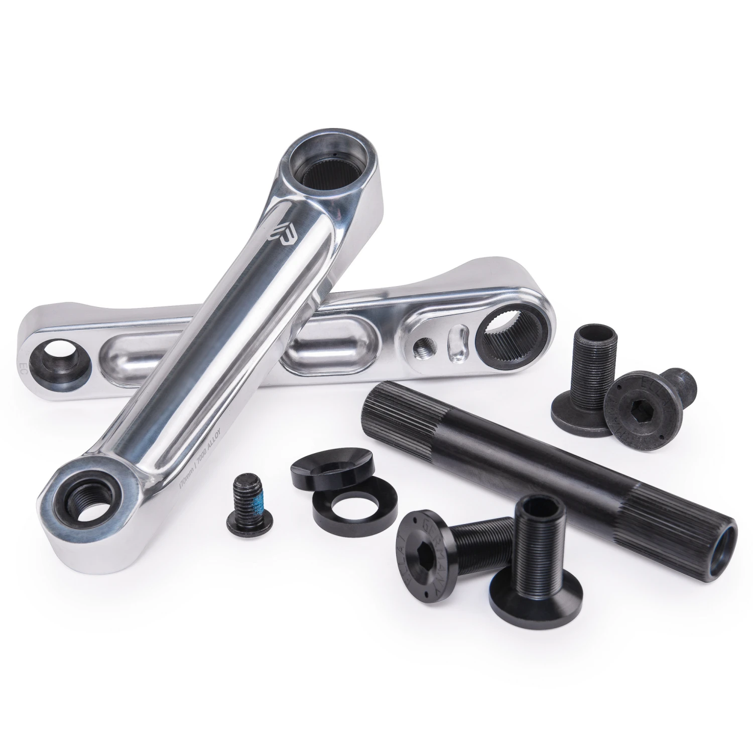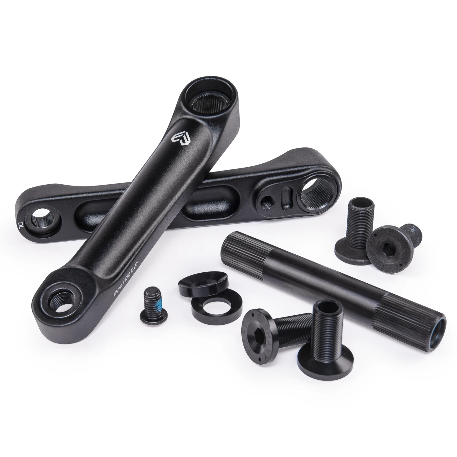 3-piece design. Cold-forged, hollow 7075-T6 alloy arms eliminate welds allowing for no weak spots. Heat-treated chromoly inserts at pedal and spindle bosses. 22mm hollow 48 spline spindle. Flush-mount hollow aluminum spindle bolts. RHD/LHD compatible. Bottom Bracket kit sold separately.