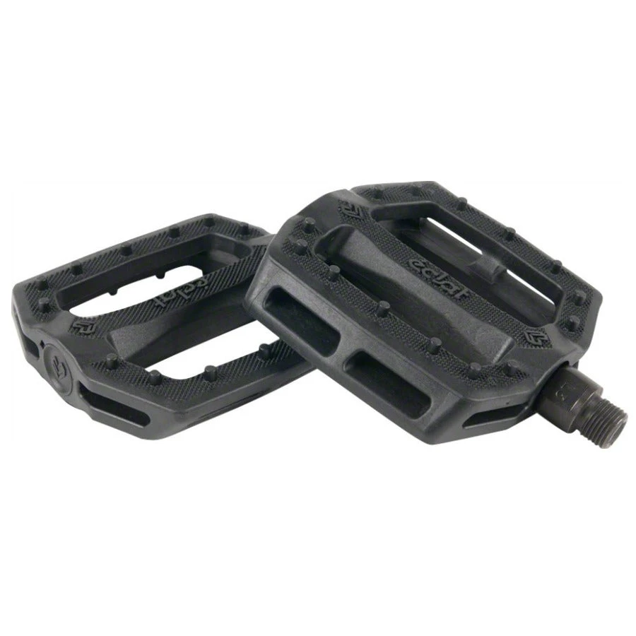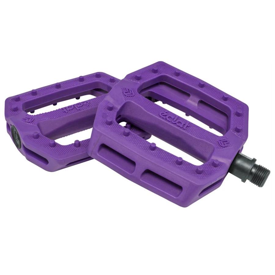 Low profile, injection molded nylon/fiberglass blend bodies with knurled surface and 14 molded pins per side. Chromoly spindle. Loose ball bearings. 9/16″ spindle. Sold in pairs.