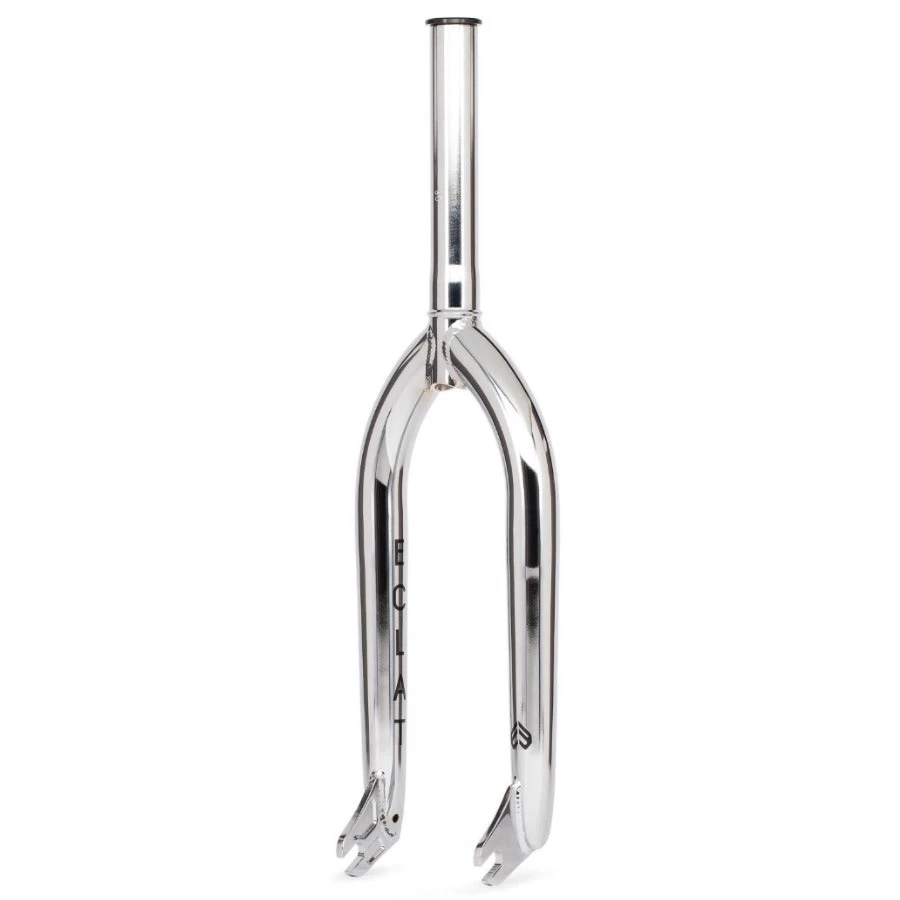 Slimmed-down version of Eclat’s Storm fork. Made from full-liquid post-weld heat-treated, seamless 4130 chromoly. Fully machined steerer tube with integrated headset race. Slimmer, butted legs are hydro-formed for increased strength and a super clean look. Clearance for 2.5″ tires. CNC machined, laser-cut 5mm thick, heat-treated chromoly dropouts for 3/8″ axles. Available in multiple offsets. Lifetime guarantee against bending and breaking.