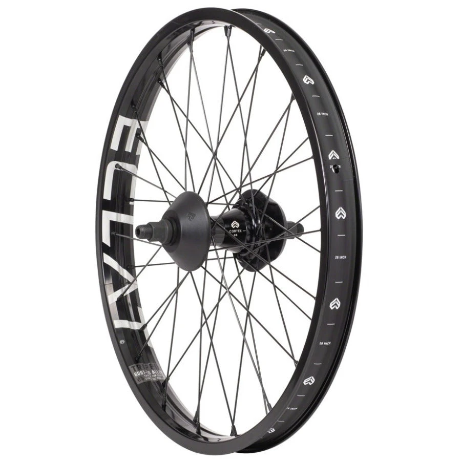 Eclat’s Cortex cassette hub and Trippin double wall rim laced with 14 gauge spokes and brass nipples. Includes 2 nylon/fiberglass blend hub guards.