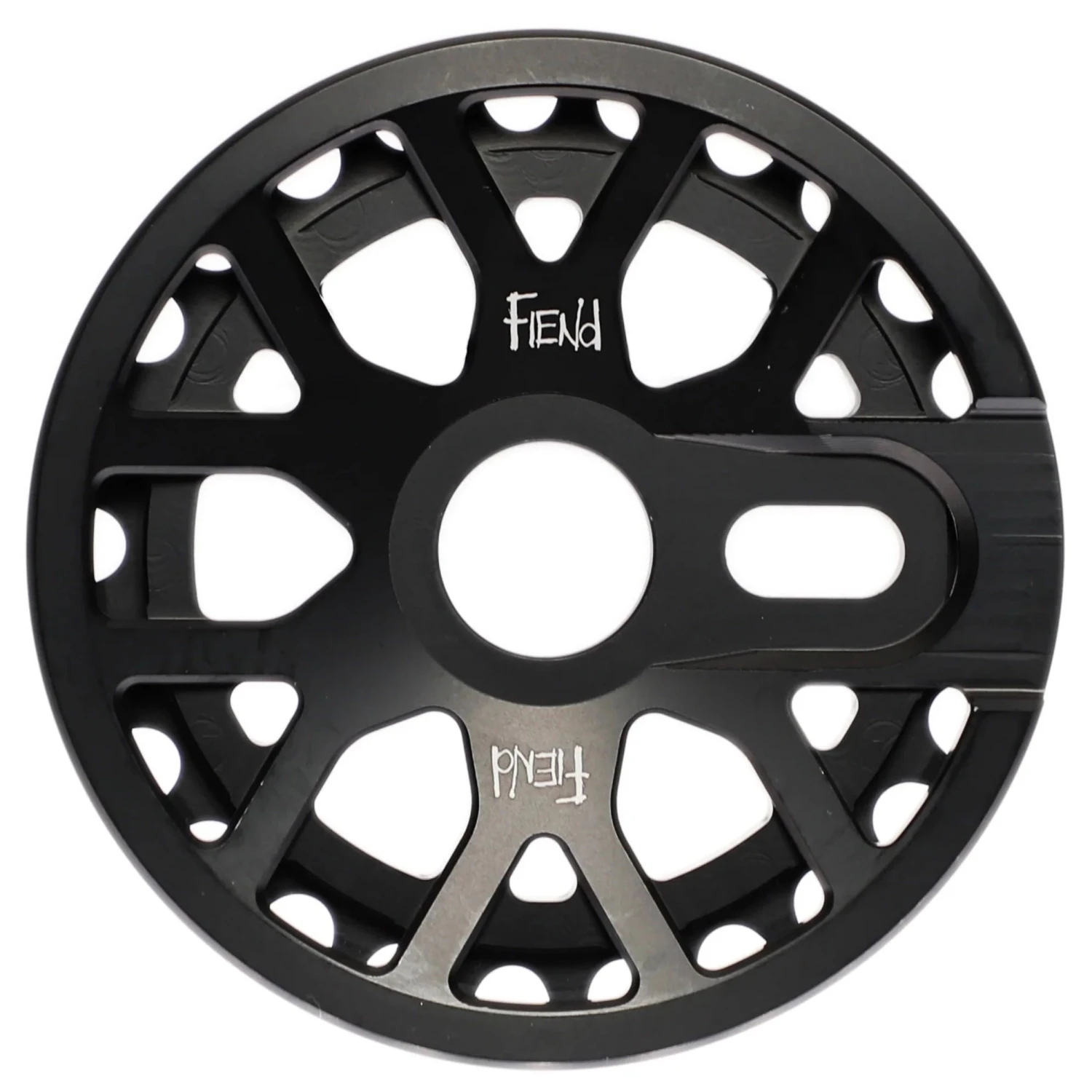 CNC machined from 6061 aluminum with unique guard and offset teeth for improved chain alignment.