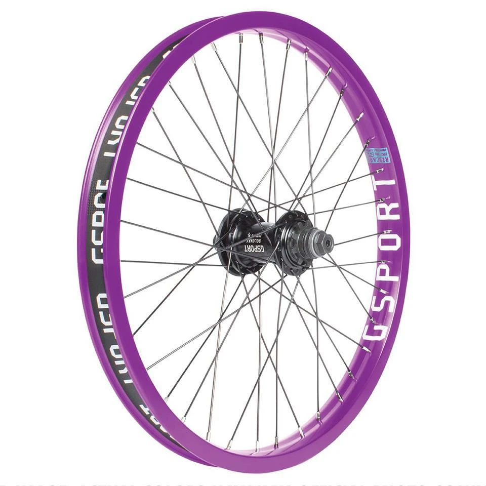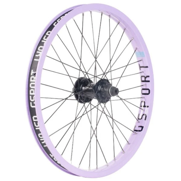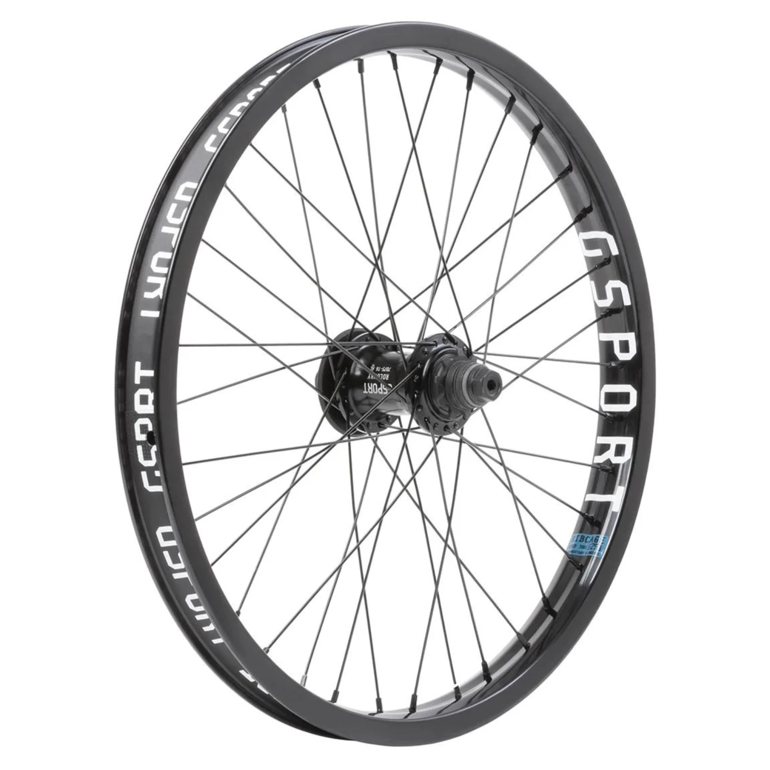 G-Sport’s new Roloway cassette rear hub and Ribcage rim laced with 14 gauge spokes and brass nipples. Includes non-drive side hub guard.