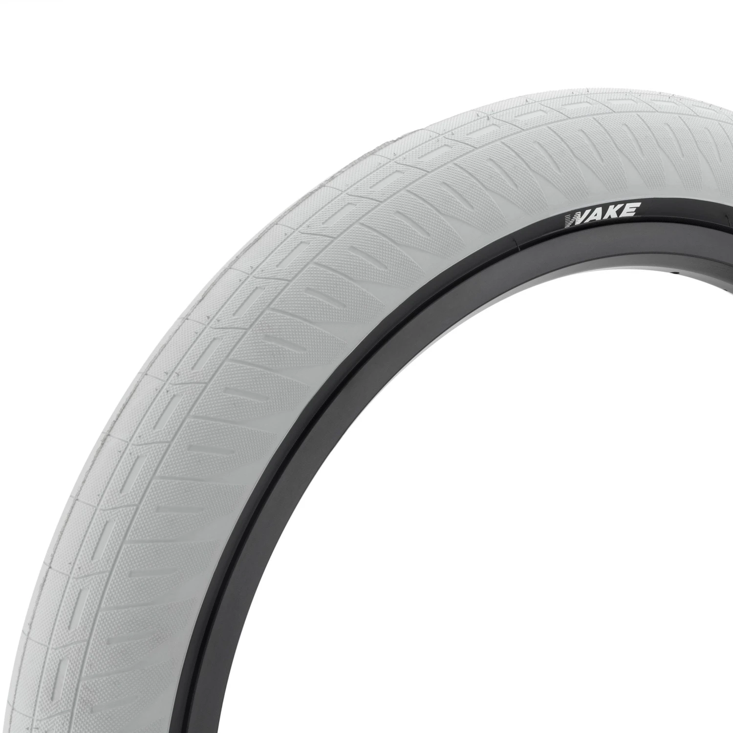 The Kink Wake tire features an all-new low profile, grippy, modern tread design. The entire tread surface is knurled for extra grip while still rolling fast and smooth. An aggressive but low tread profile makes this tire great for a range of surfaces, from street to park to dirt. The side treads taper down flush to the sidewall, giving you traction on carves and helping with grind clearance. The 2.45” width is plenty wide while still leaving space for good frame clearance. 60 max PSI.