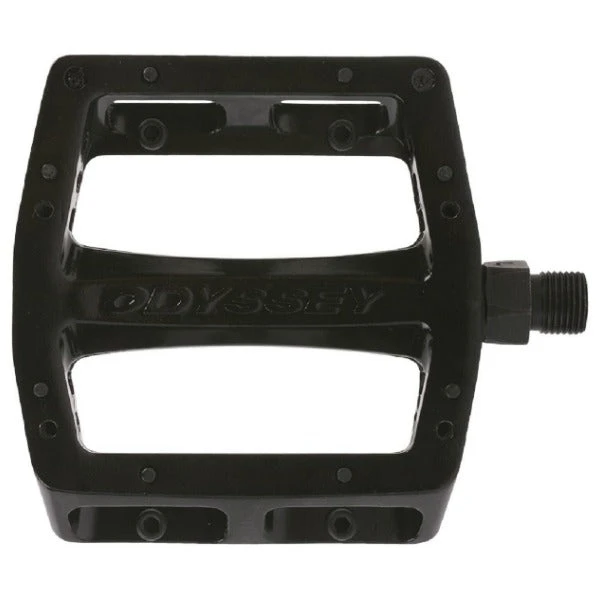 A modern interpretation of the classic JC pedal with a lighter body, larger windows, and trail-inspired shape and pin length. Aluminum body with chromoly spindle and looseball bearings. Replacement pins included and also sold separately. Sold in pairs. 9/16″.