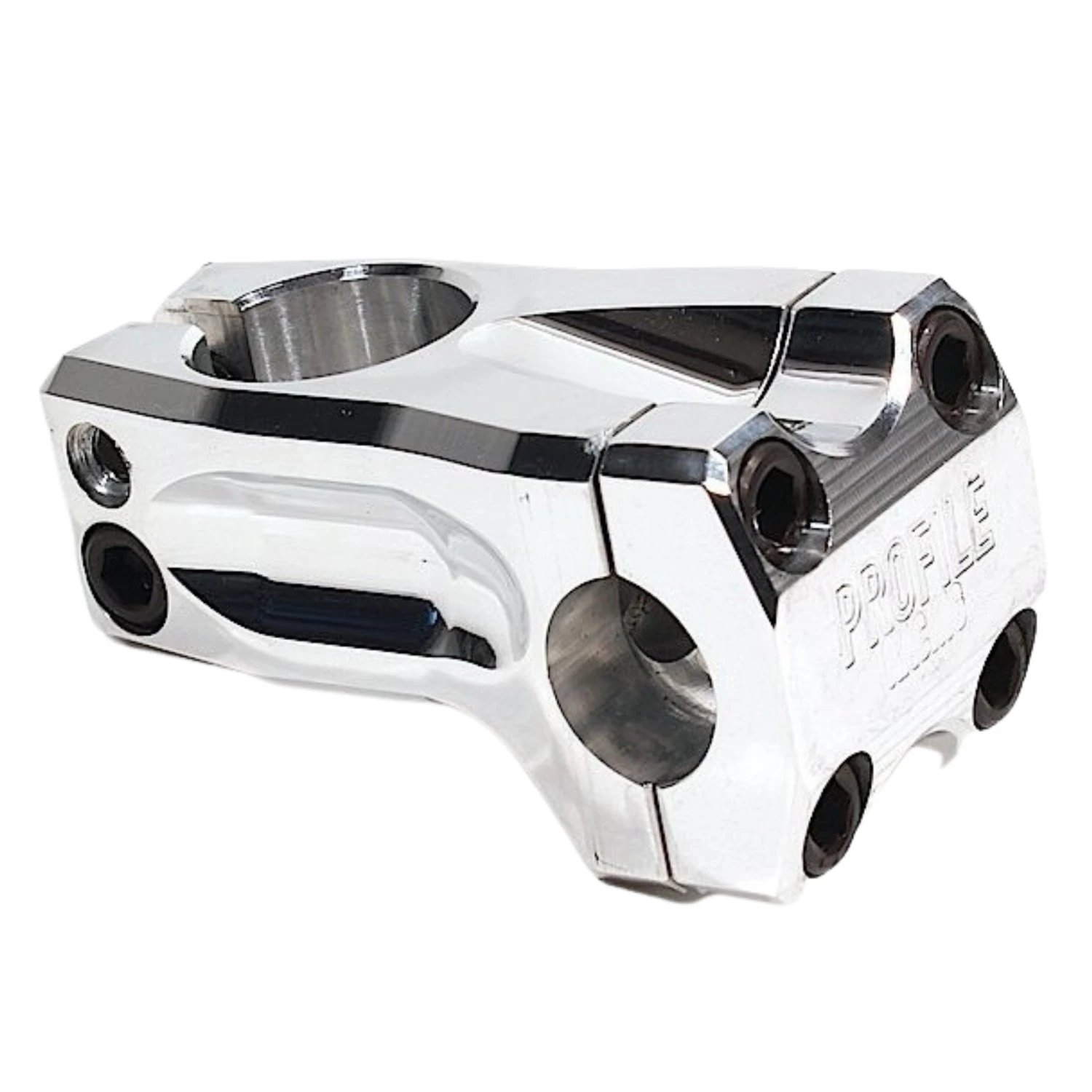 Front load stem. Made in the USA fron CNC’d aluminum. Excessive machining to reduce weight. Laser-etched Profile logos.