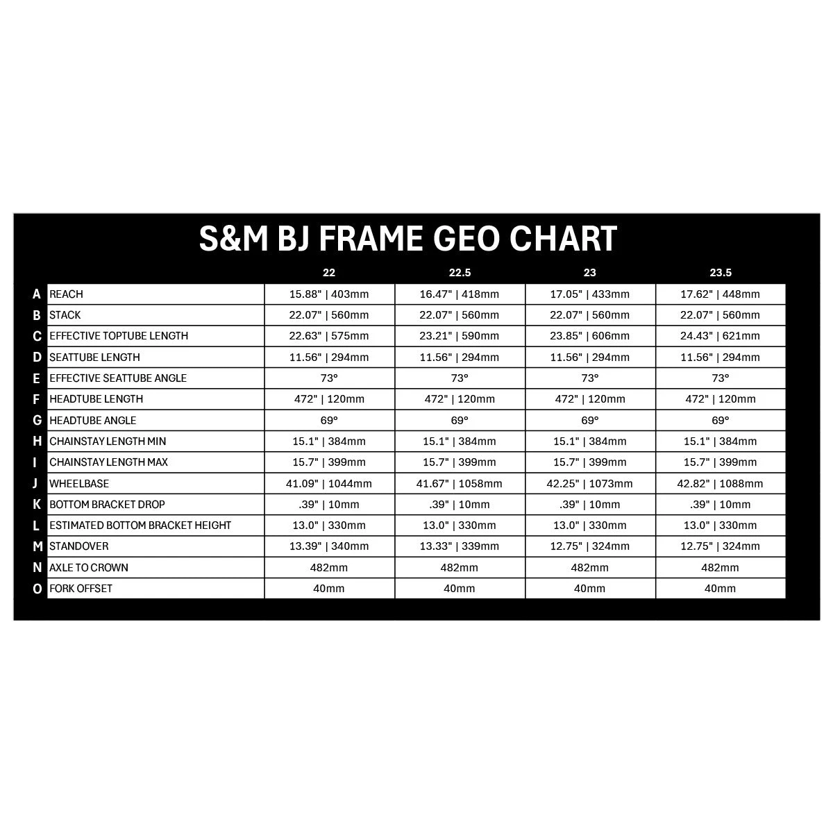 | TOP TUBE LENGTHS | 22″, 22.5″, 23″, 23.5″ |