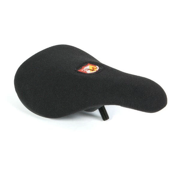 Slim-padded base. One-piece tear-resistant Kevlar cover with Shield logo patch. Compatible with pivotal seat posts only.