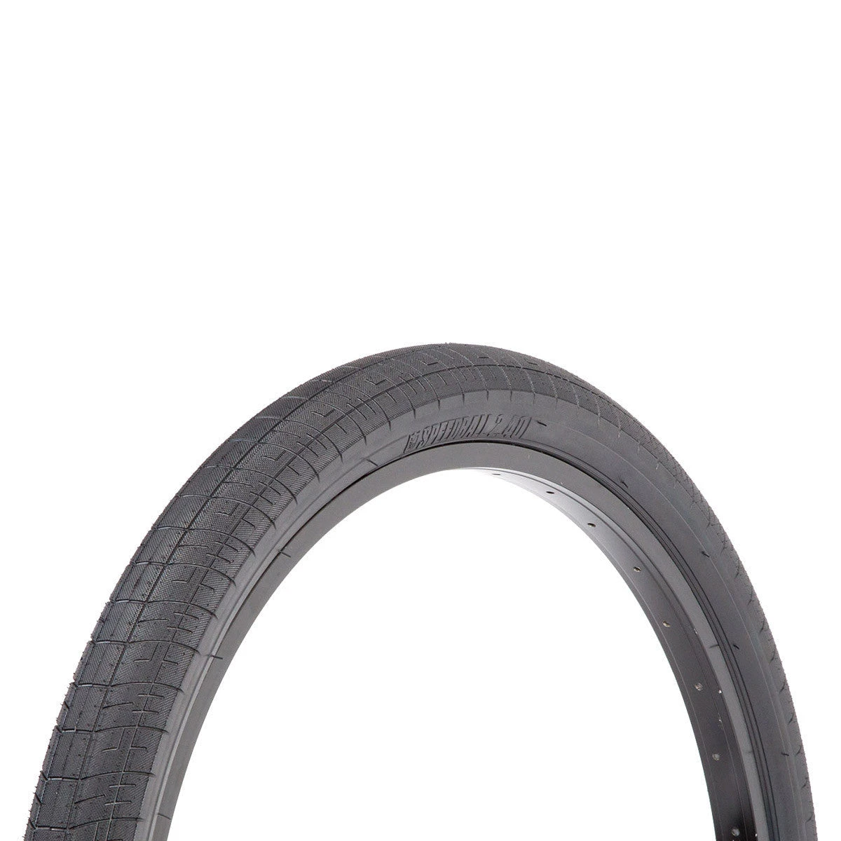 Just like the 20″ version, but with a broken center tread, making them great for street, park and dirt! Featuring a high pressure casing with extra pinch flat protection. Multi-edged S/M shoulder tread design that looks cool and holds the ground. The 2.25″ is light and fast and works well in the front or rear. It’s big enough for today’s street riding but small enough to stay out of the way on grinds, spines, or frames and forks with minimal clearance. The 2.4″ works equally well on the front and rear for riders that prefer big tires. Max 70 psi.