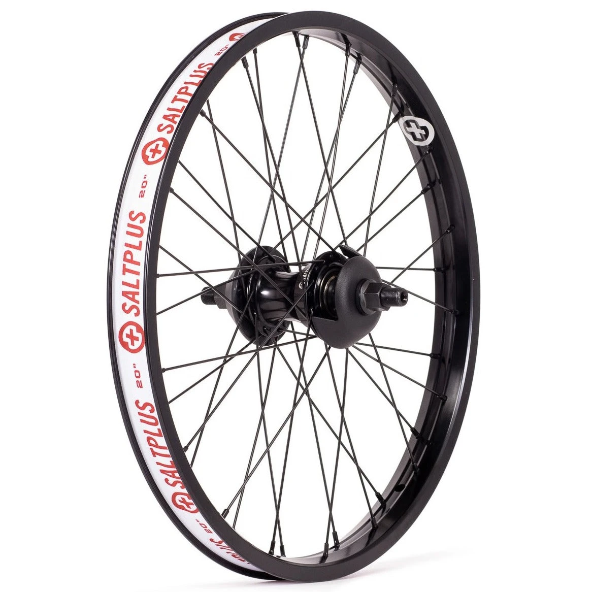 Salt Plus Vertex sealed freecoaster hub and pinned, double wall Summit rim laced with 14 gauge spokes and back nipples. Includes 2 nylon hub guards.
