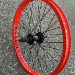Shadow’s Optimized freecoaster hub and Truss rim laced with stainless steel spokes and brass nipples. Available in RHD or LHD with 9th driver.